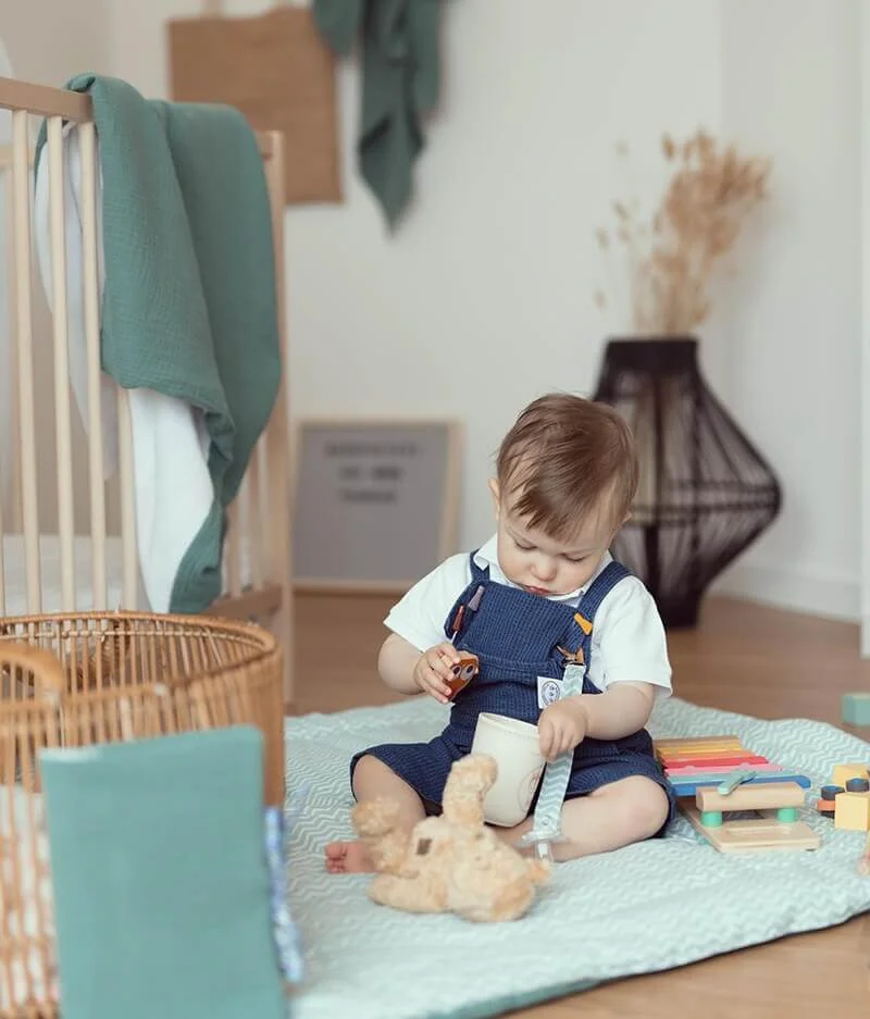 Le tapis de jeux bébé en ouate épaisse est un indispensable au développement de votre tout-petit qui pourra ainsi construire sa motricité au sol dans un espace adapté.