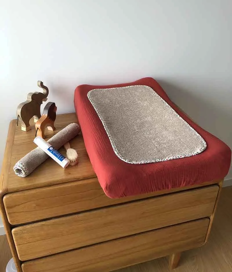 Notre housse super pratique pour protéger le matelas à langer de bébé, elle s’enfile aussi très facilement comme un drap housse.