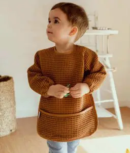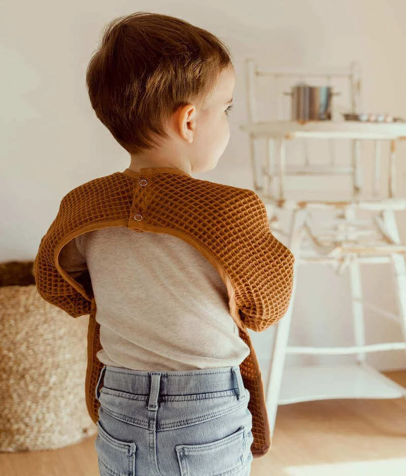Notre bavoir à manches est fabriqué en France. Il est composé à 100% de matières garanties sans substance nocive ou irritante, il conviendra parfaitement à la peau sensible des bébés et sera respectueuse de notre environnement.