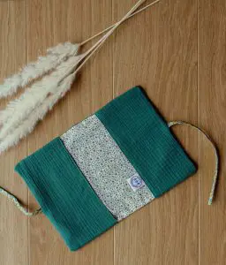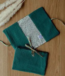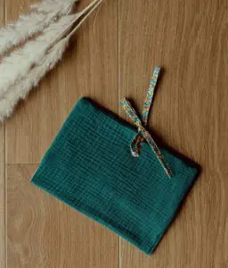 • Double gaze vert sapin et coton à motifs fleuri certifiés sans substance nocive ou irritante.