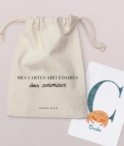 Chaque carte joliment illustrée présente au recto une lettre accompagnée de son animal « totem », et offre au verso un espace pour que votre enfant note d’autres mots ou dessins commençant par la même lettre.