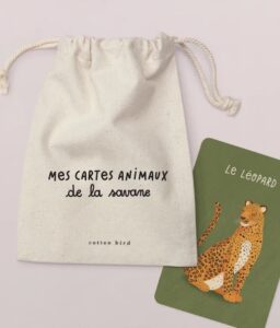 Explorez la savane avec vos enfants grâce à les cartes d’apprentissage Cotton Bird Animaux de la savane !