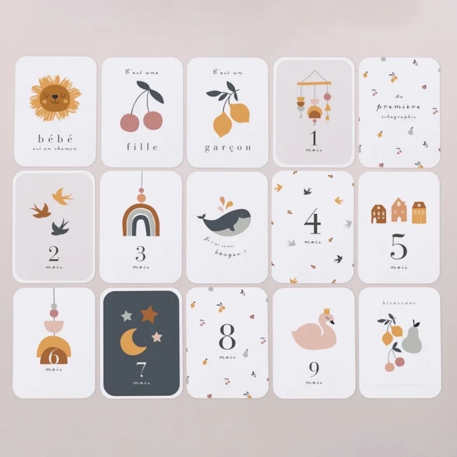 Ces 15 cartes illustrées permettent de mettre en scène les grands moments de la maternité et de les partager avec vos proches.