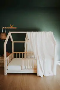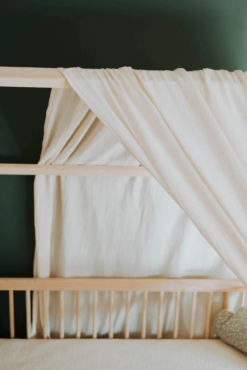 Notre ciel de lit cabane en double gaze de coton apportera une touche poétique au lit cabane de votre tout-petit.