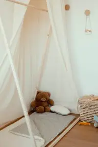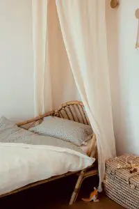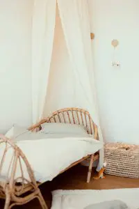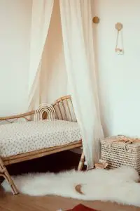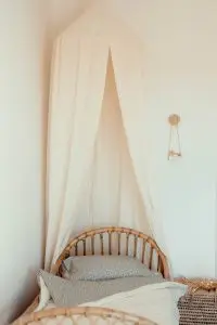 La fixation du ciel de lit doit être effectuée grâce à un crochet solide (non fourni) adapté à la nature du matériau constituant le plafond.