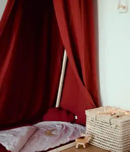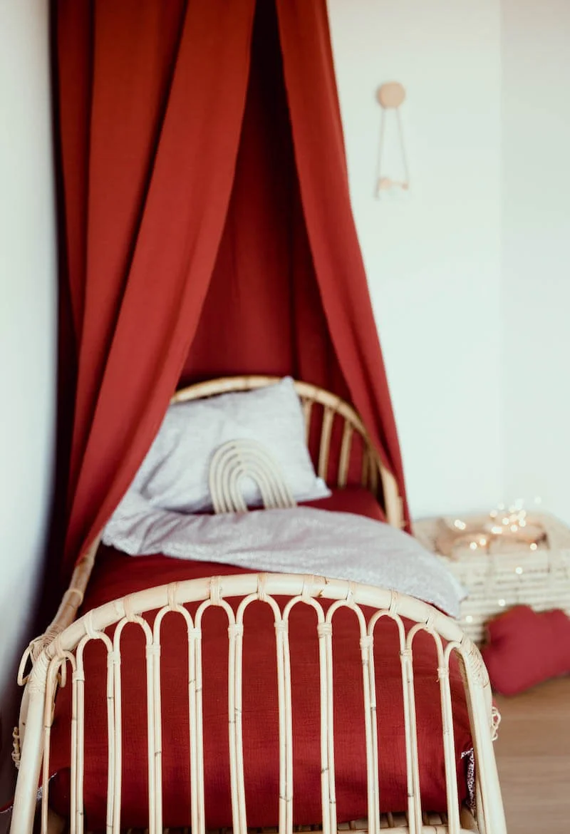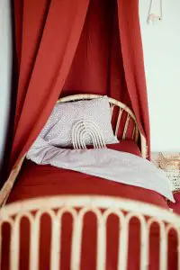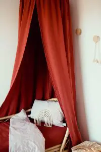 La fixation du ciel de lit doit être effectuée grâce à un crochet solide (non fourni) adapté à la nature du matériau constituant le plafond.