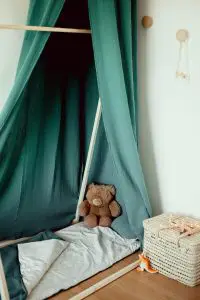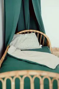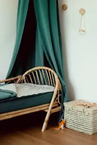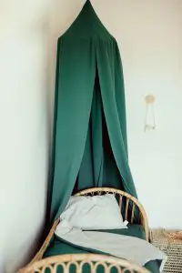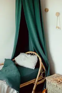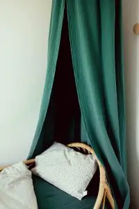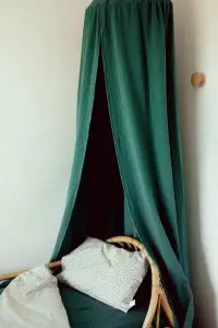 La fixation du ciel de lit doit être effectuée grâce à un crochet solide (non fourni) adapté à la nature du matériau constituant le plafond.