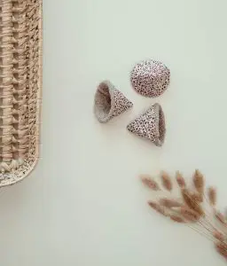 • Coton à motifs fleuris tomette et éponge couleur lin super absorbante certifiés sans substance nocive ou irritante.