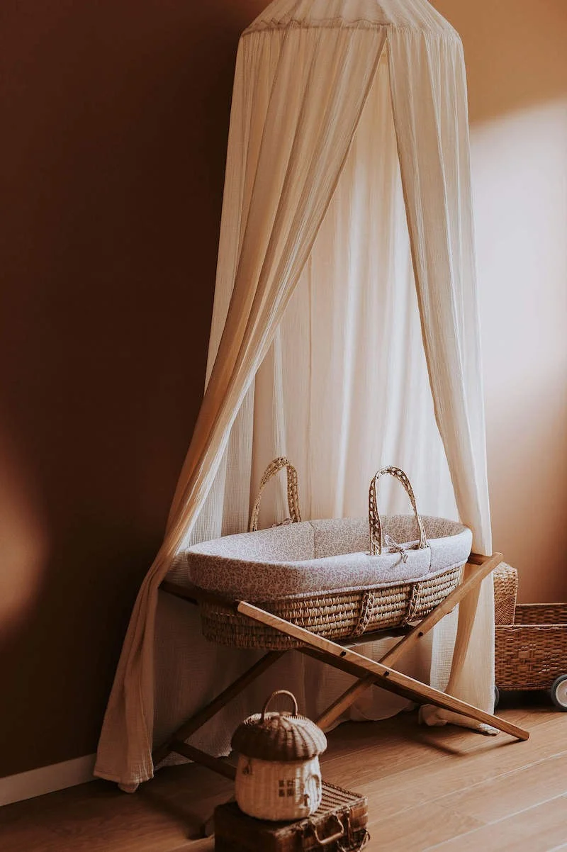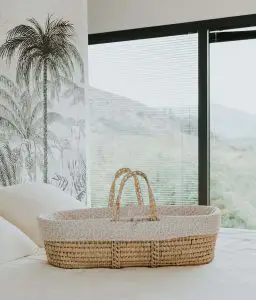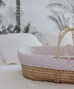 Notre couffin moïse en palme tressée à la main sera le cocon parfait pour les premiers instants de vie de votre nouveau-né.