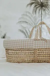 Notre couffin moïse en palme tressée à la main sera le cocon parfait pour les premiers instants de vie de votre nouveau-né. Ce petit nid douillet apportera tout le confort nécessaire à votre tout petit, qui sera lové dans un espace sécurisant.