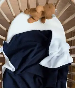 • Double gaze de coton bleu nuit certifié sans substance nocive ou irritante.