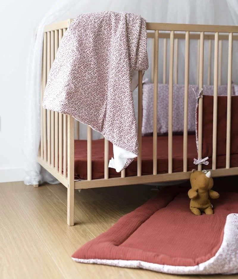 • Coton à motifs fleuris tomette certifié sans substance nocive ou irritante.