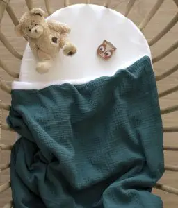La couverture bébé en double gaze de coton vert sapin vous suivra dans toutes vos aventures ! Incroyablement douce et moelleuse, notre jolie couverture fera le bonheur de bébé.