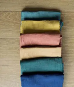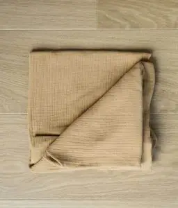 • Double gaze de coton camel certifiée sans substance nocive : cette matière naturelle et respirante évite l’excès de chaleur.