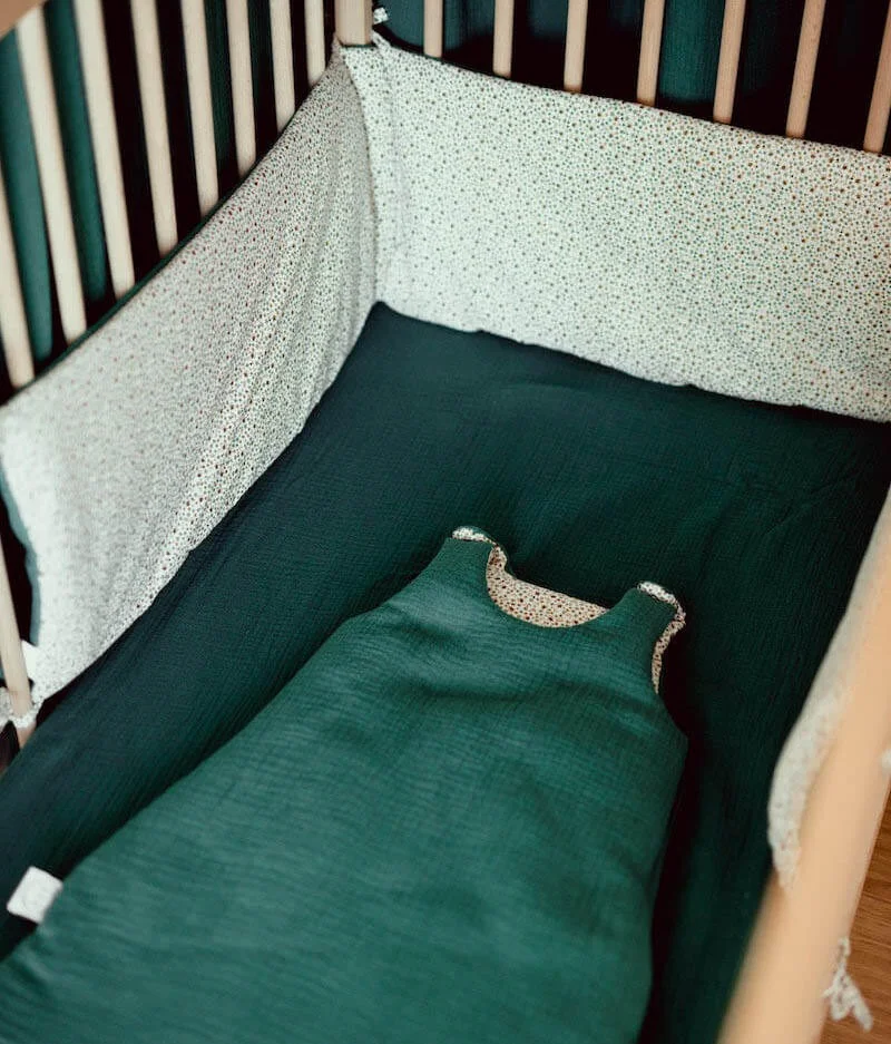 • Double gaze de coton vert-sapin certifiée sans substance nocive : cette matière naturelle et respirante évite l’excès de chaleur.
