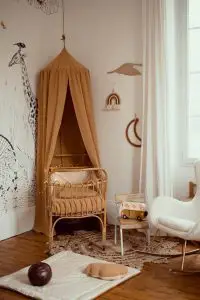 • Extérieur en double gaze camel et intérieur en coton caramel à motifs fleuris certifiés sans substance nocive ou irritante