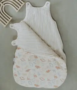 La gigoteuse est pratique et esthétique : elle est composée d’un zip sur le côté qui permet une ouverture totale pour glisser bébé dedans facilement sans le réveiller. Elle est également munie de boutons pression sur les épaules, avec une ouverture inversée qui empêchera bébé d’ouvrir sa gigoteuse lorsqu’il sera plus grand.