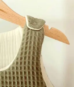 La gigoteuse est pratique et esthétique : elle est composée d’un zip sur le côté qui permet une ouverture totale pour glisser bébé dedans facilement sans le réveiller. Elle est également munie de boutons pression sur les épaules, avec une ouverture inversée qui empêchera bébé d’ouvrir sa gigoteuse lorsqu’il sera plus grand.