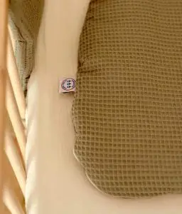 Elle est composée à l’extérieur de nid d’abeille 100% coton et à l’intérieur de double gaze de coton léger et aérien offrant à bébé un toucher doudou ; cette matière naturelle et respirante évite également l’excès de chaleur.
