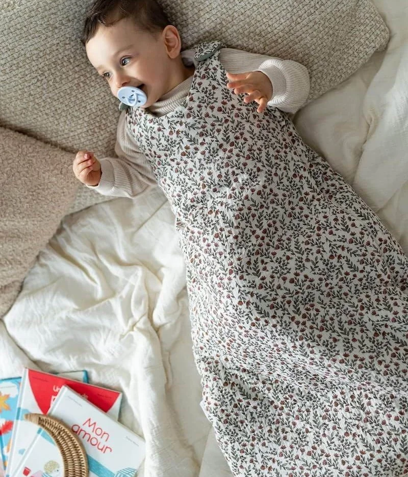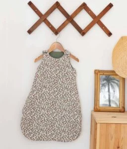 Cette gigoteuse est garnie de ouate hypoallergénique au matelassage douillet et apporte confort et chaleur à bébé. Elle est composée de double gaze de coton léger et aérien offrant à bébé un toucher doudou ; cette matière naturelle et respirante évite également l’excès de chaleur.