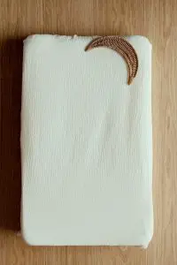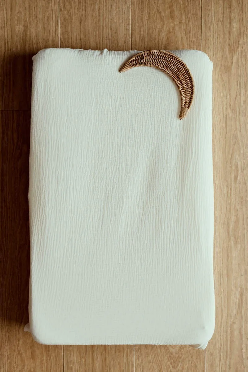 Apportez une touche de déco au coin change de bébé et offrez-lui notre housse de matelas à langer en double gaze de coton qui s’enfile très facilement comme un drap housse.