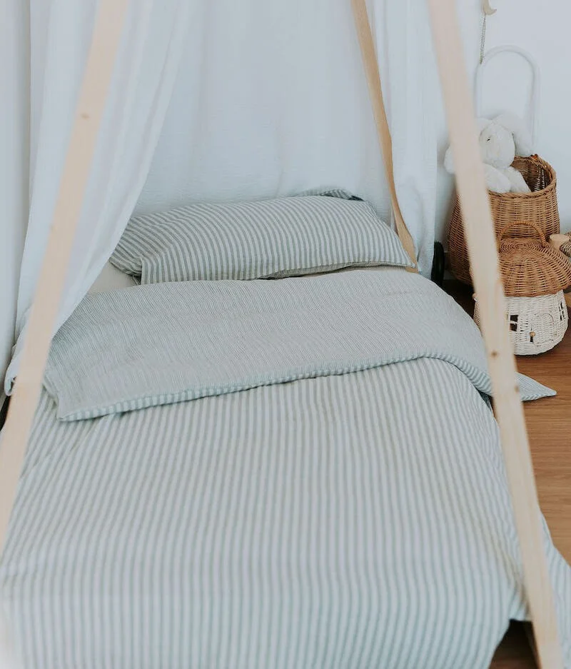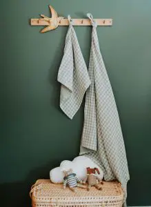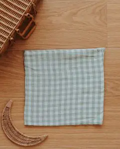 • Double gaze de coton vichy vert de gris certifiée sans substance nocive ou irritante.