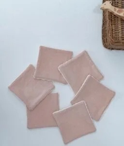 • Composées d’un côté d’éponge écru super absorbante 100% coton, et de l’autre côté d’un coton tout doux couleur rose nude.