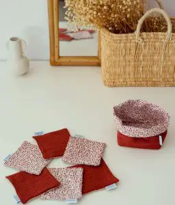 • Composées d’un côté d’éponge taupe super absorbante 100% coton, et de l’autre côté, pour 3 d’entre elles d’un coton tout doux à motifs fleuris et pour les 3 autres d’une double gaze tomette (panière non fournie)