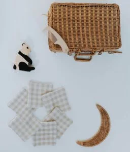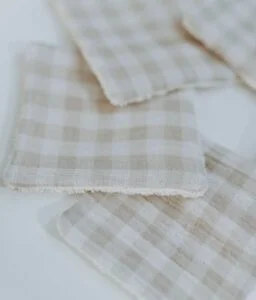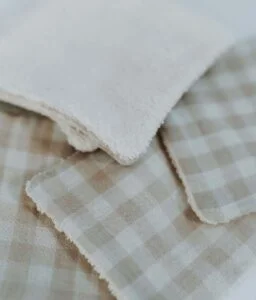 • Composées d’un côté d’éponge écru super absorbante 100% coton, et de l’autre côté d’une double gaze vichy galet.