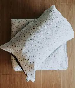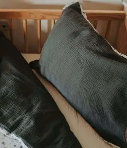• Taie d’oreiller 40×60 cm et Housse de couette 100×140 cm forme « cheminée »  qui permet de maintenir la couette en place grâce au rabat coincé sous le matelas