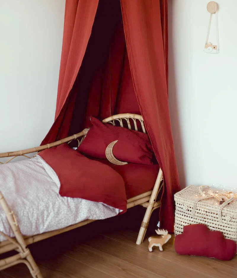 Notre parure de lit est également réversible et permet de changer de style selon son envie : un côté en double gaze de coton léger et aérien offrant à votre enfant un toucher doudou ; cette matière naturelle et respirante évite également l’excès de chaleur. Et l’autre face est composée de tissu 100% coton à motifs et apporte une touche chic et tendance.