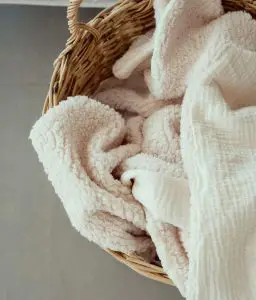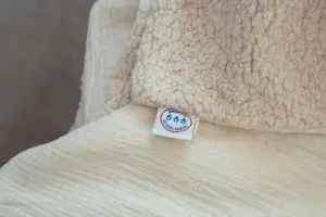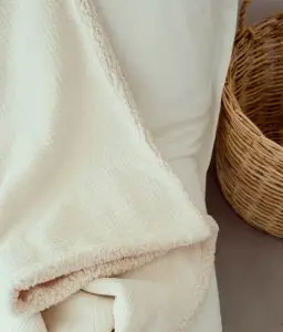 • Moumoute écru ultra douce et double gaze de coton couleur écru certifiés sans substance nocive ou irritante.