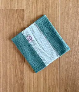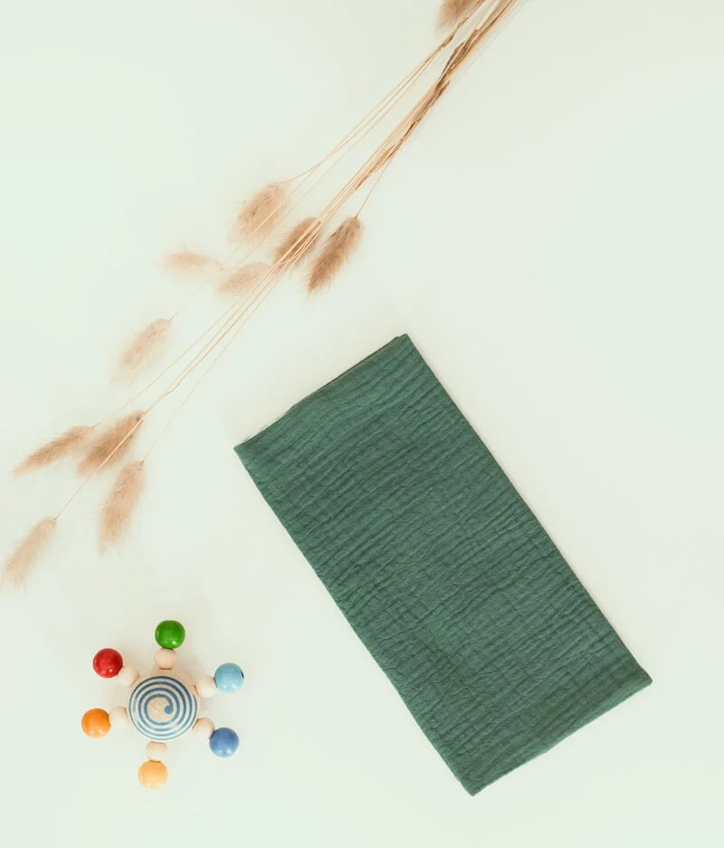 • Extérieur en double gaze de coton eucalyptus et intérieur en coton à motifs chevrons couleur vert menthe certifiés sans substance nocive