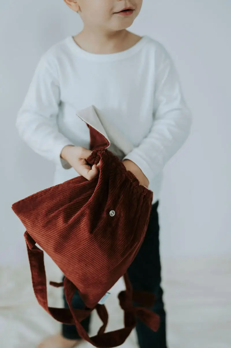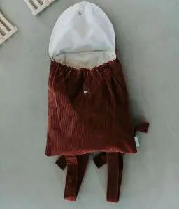 • Extérieur en velours tomette tout doux et intérieur du sac en coton enduit couleur écrue certifiés sans substance nocive