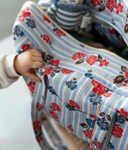 Ultra fonctionnel, il est composé de plusieurs de poches de rangement : un compartiment extérieur pour avoir l’essentiel sous la main et 4 poches intérieures élastiquées pour maintenir les affaires de bébé.