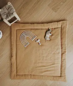 Notre tapis de jeux servira également parfaitement de petit édredon pour le lit de votre enfant.