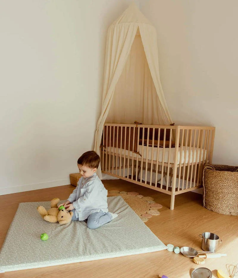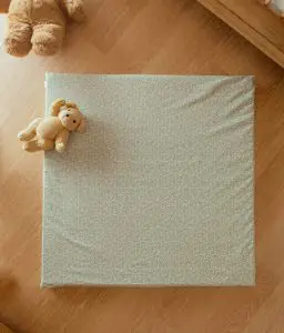 • Réversible : une face en velours de coton écru et l’autre face en coton vert à motifs fleuris certifiés sans substance nocive.