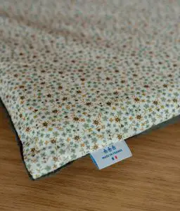 • Réversible : une face en velours de coton vert sapin et l’autre face en coton à motifs fleuris certifiés sans substance nocive.