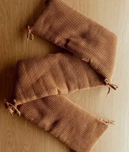 • Nid d’abeille caramel 100% coton certifié sans substance nocive ou irritante.